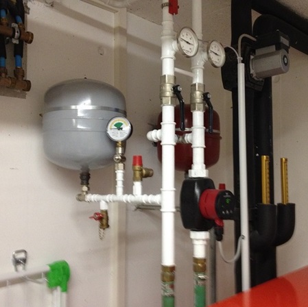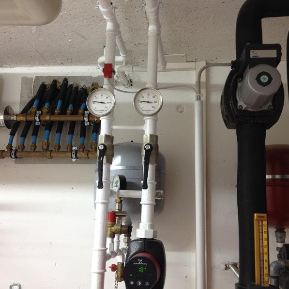 Komplette Heizungsinstallation mit Erdwärme und Warmwasserboiler in Einfamilienhaus